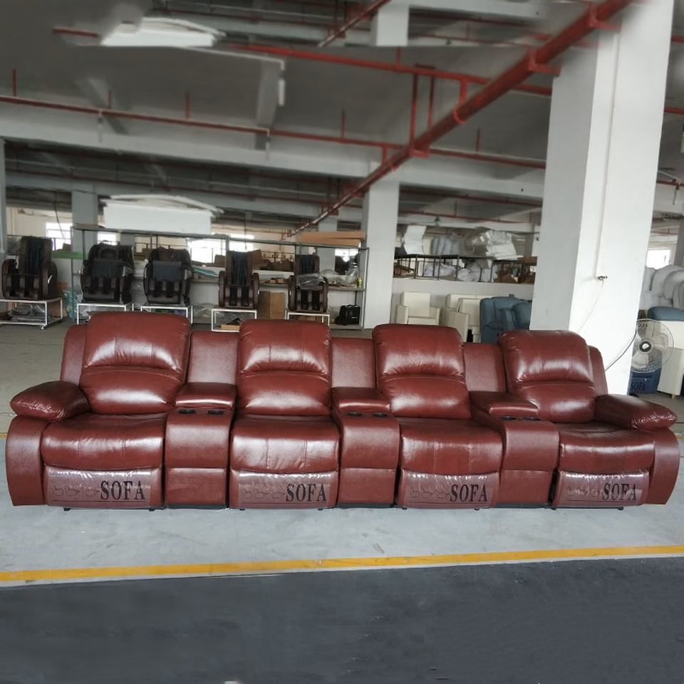 โซฟาหนังปรับเอนไฟฟ้า 4 ที่นั่ง รูปตัวแอล พร้อมไฟ LED และพอร์ต USB ชุดที่นั่งโฮมเธียเตอร์ปรับเอนด้วยระบบไฟฟ้า
