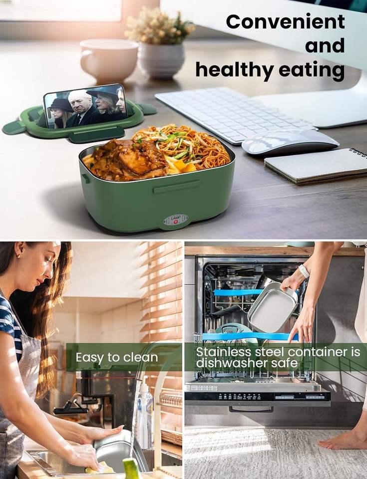 กล่องอาหารกลางวันไฟฟ้าเครื่องอุ่นอาหารกล่องอาหารกลางวันอุ่นเร็วขึ้นพกพาได้1.5L พร้อมช้อนส้อมและถุงอาหารกลางวันหุ้มฉนวน