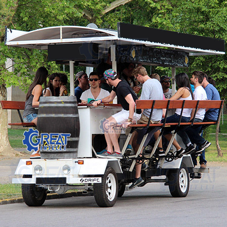 จักรยานเบียร์ไฟฟ้าขนาดเล็ก 4 ล้อ โครงเหล็ก แบบสองที่นั่ง พร้อมบันไดปั่น