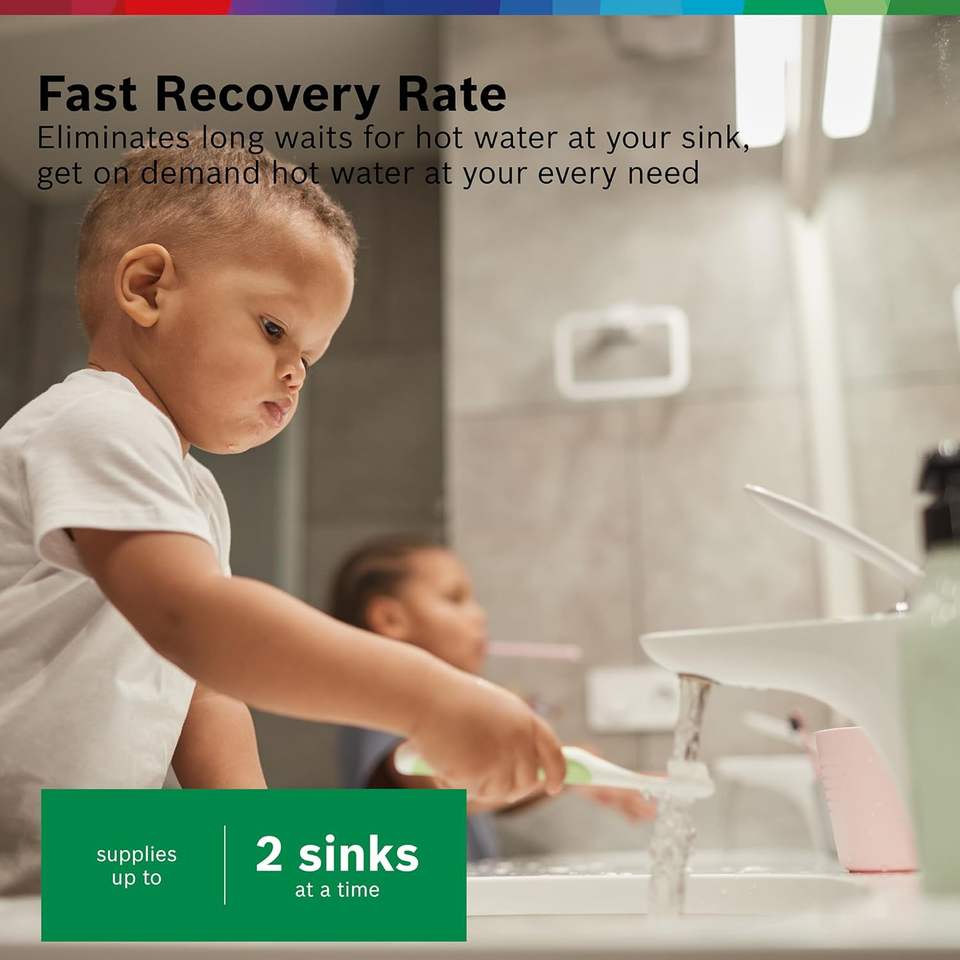 FAST RECOVERY RATE:Eliminates long waits for hot water at your sink