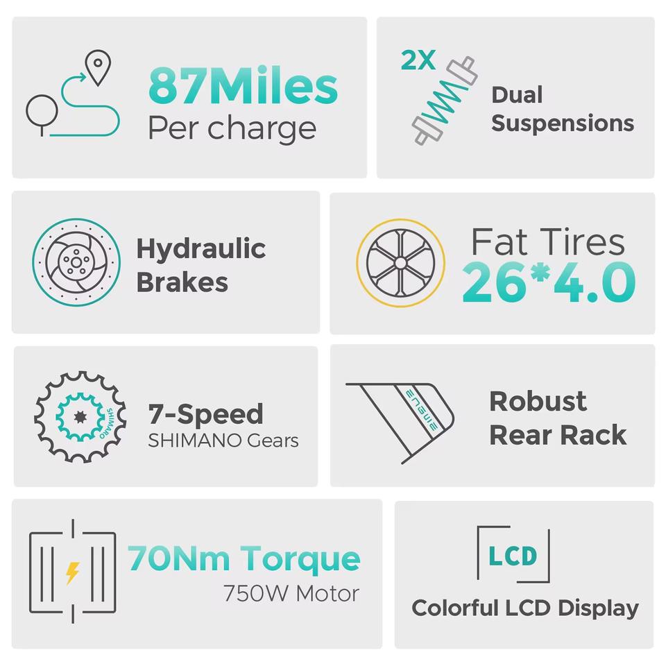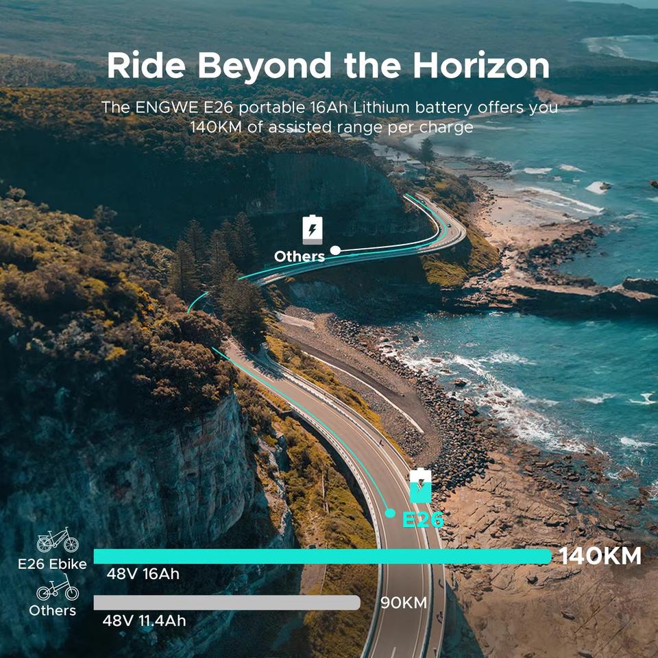 จักรยานเสือภูเขาไฟฟ้าพร้อมมอเตอร์ฮับหลัง 250W โครงอะลูมิเนียม จักรยานไฟฟ้า MTB แบตเตอรี่ลิเธียม 48V16Ah ขนาด 26 นิ้ว สำหรับขี่ออฟโรด ENGWE E26