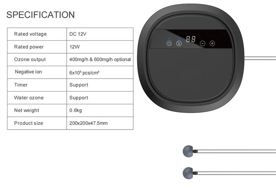 เครื่องผลิต O3ไฟฟ้าสำหรับรถยนต์บ้านทำน้ำให้บริสุทธิ์ด้วยโอโซนวัสดุ ABS ฝรั่งเศส1ปีสำหรับครัวเรือนโรงแรม