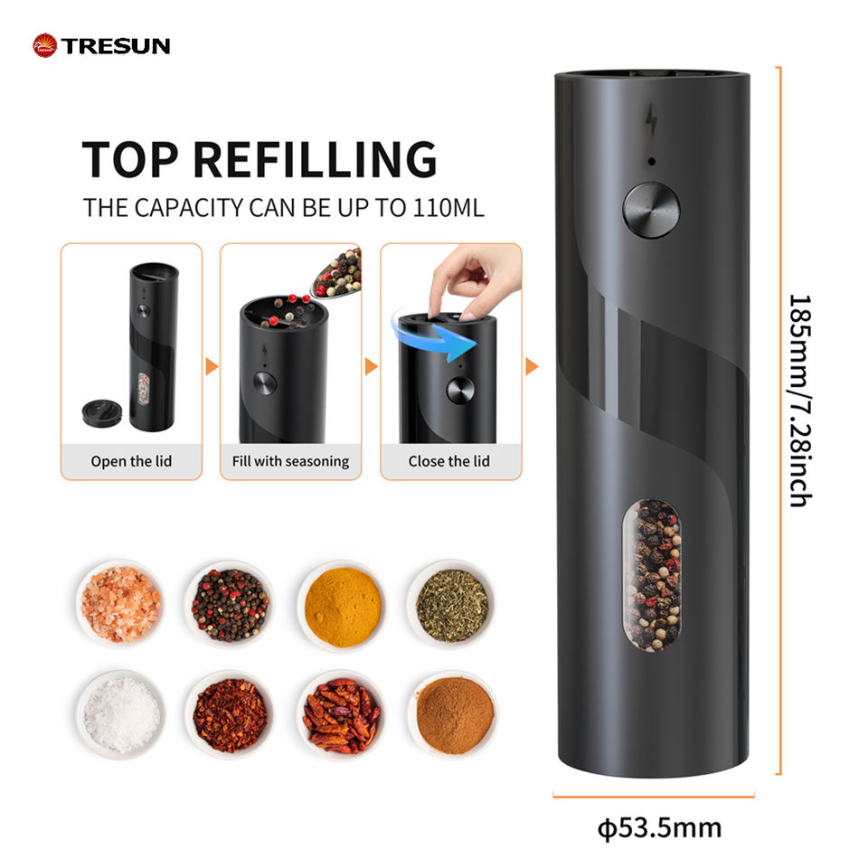 เครื่องบดพริกไทยไฟฟ้า USB ชาร์จได้เครื่องบดเกลือและพริกไทยอัตโนมัติ