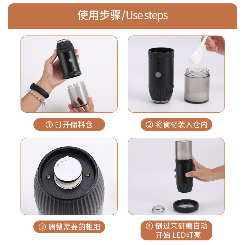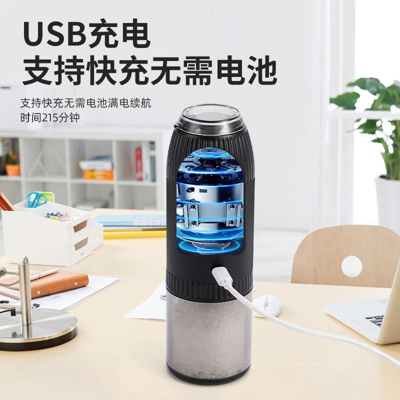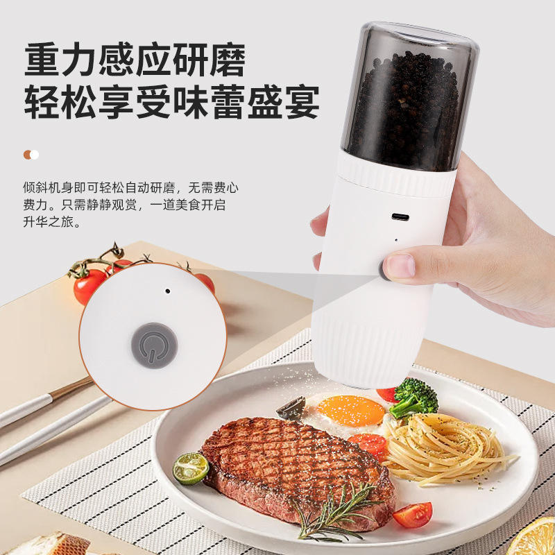 Electric Pepper Grinder Set Salt Pepper Mills USB Rechargeable Gravity Sensor Cylinder Shape Metal Lid MG717C