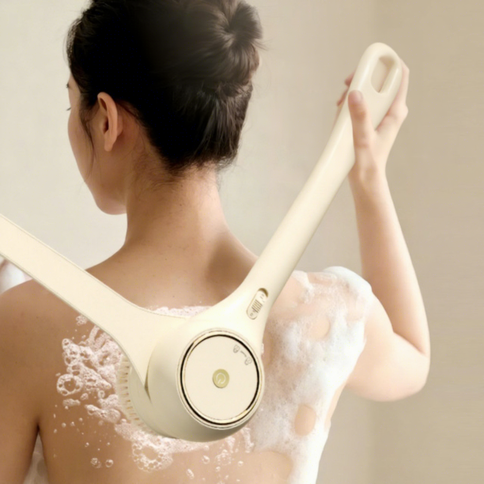 แปรงอาบน้ำพลาสติกไฟฟ้า ด้ามยาว ชาร์จไฟได้ กันน้ำ แบบสาม-ใน-หนึ่ง/ห้า-ใน-หนึ่ง สำหรับขัดผิวกาย ดีไซน์ด้ามจับคู่ สำหรับขัดหลัง