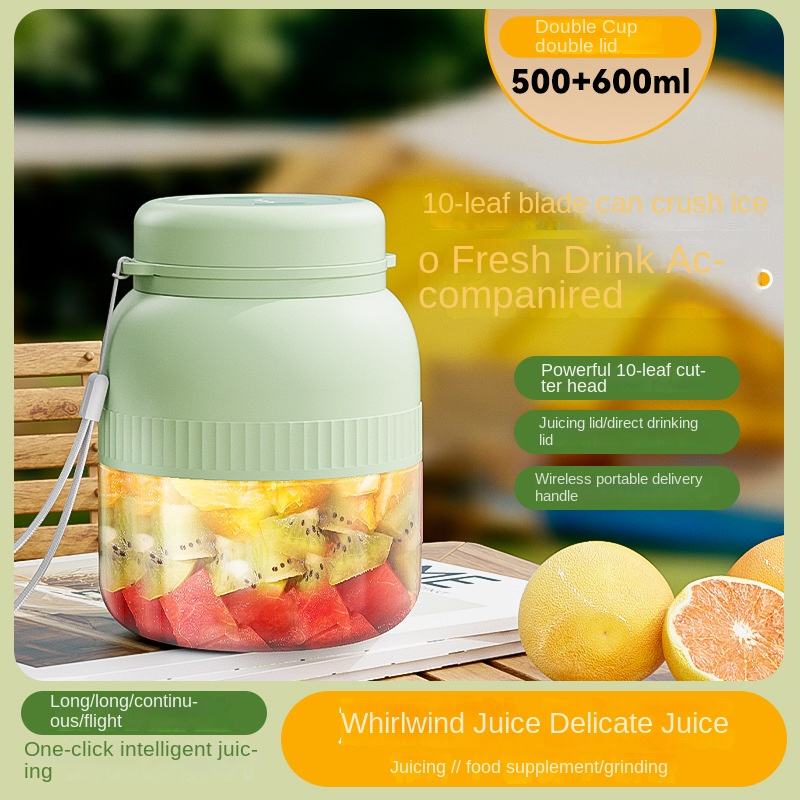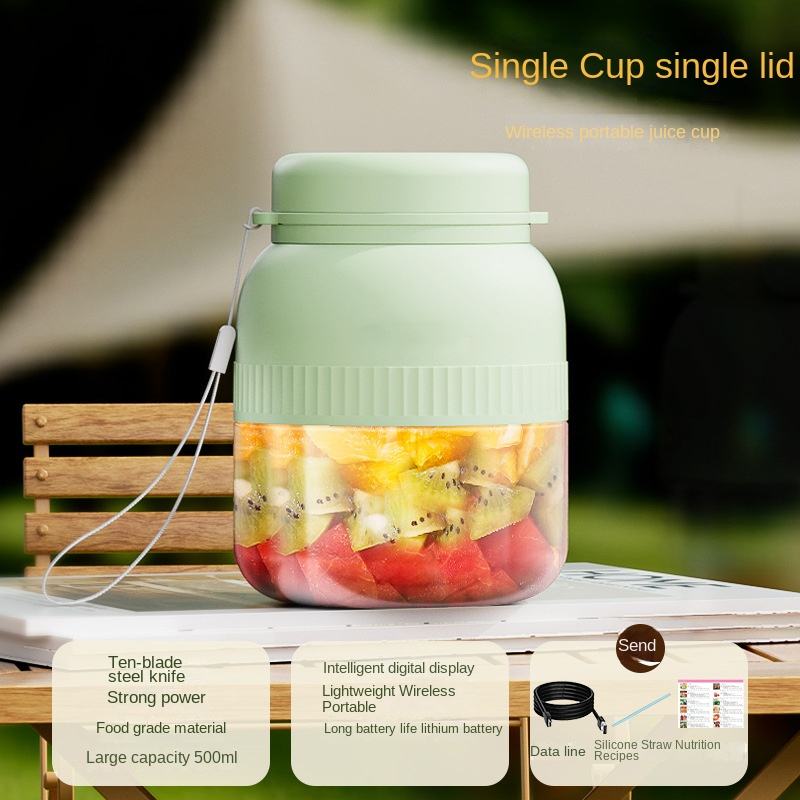 เครื่องปั่นน้ำผลไม้ไร้สายขนาด500มล. เครื่องปั่นในครัวแบบ USB เครื่องคั้นน้ำผักและผลไม้พร้อมฝาปิดสองฝา