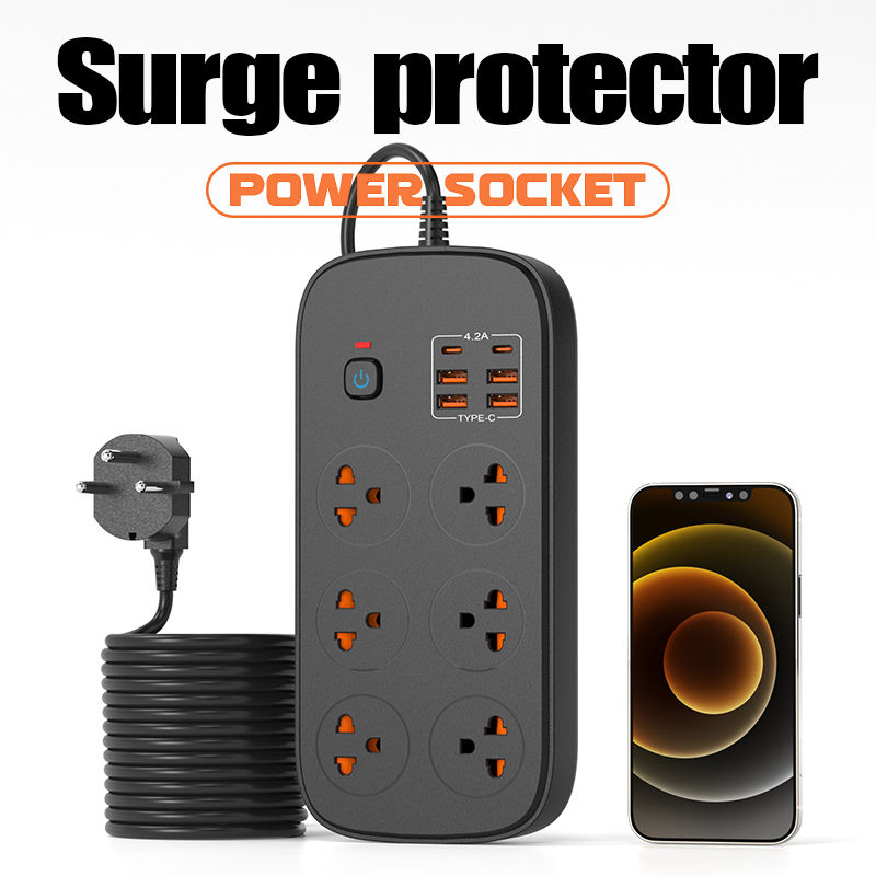 ปลั๊กพ่วงไฟฟ้าแบบมีสายต่อ 6 ช่อง ปลั๊กพ่วงไฟฟ้า ปลั๊กพ่วงหลายช่อง ป้องกันไฟกระชาก