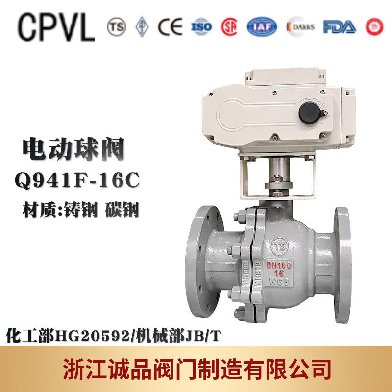 วาล์วบอลไฟฟ้า Q941F-16 แบบเปิด/ปิดอัจฉริยะ ผลิตจากเหล็กหล่อและสแตนเลส พร้อมหน้าแปลน สำหรับน้ำ แก๊ส น้ำมัน รับผลิตตามแบบ OEM