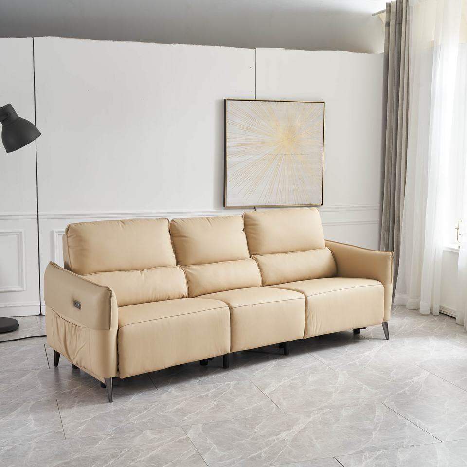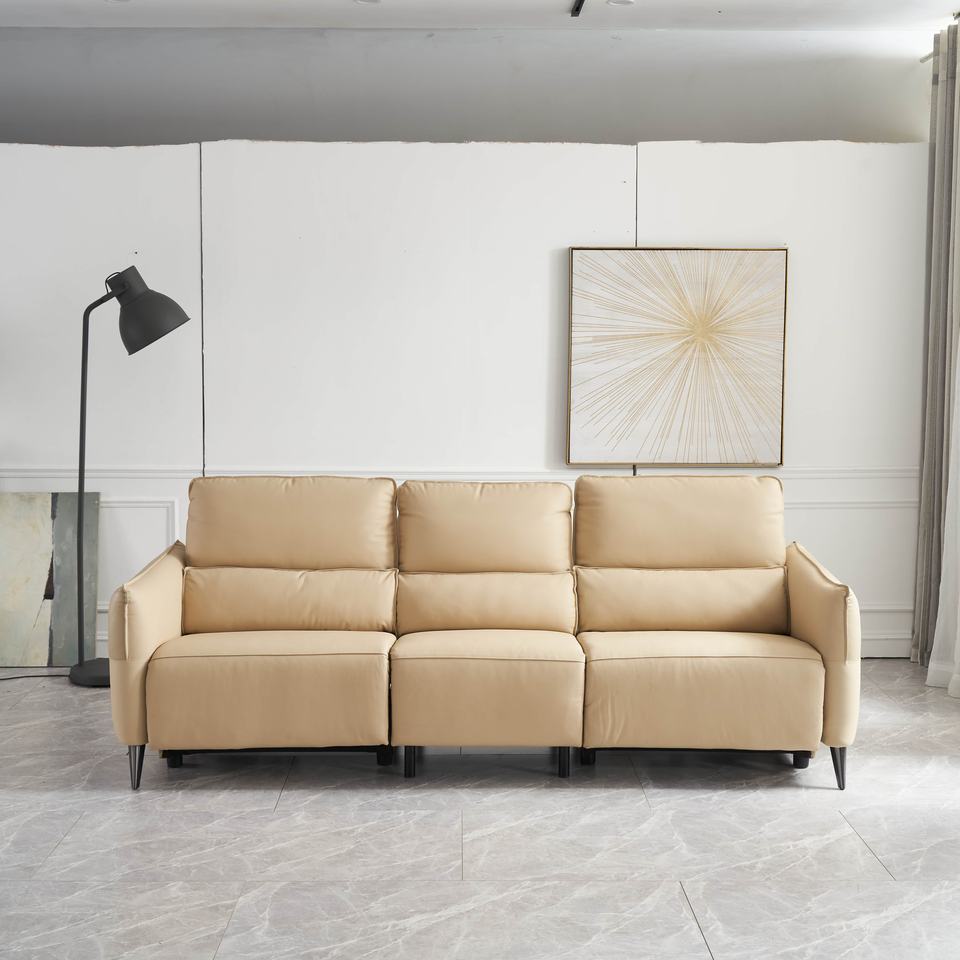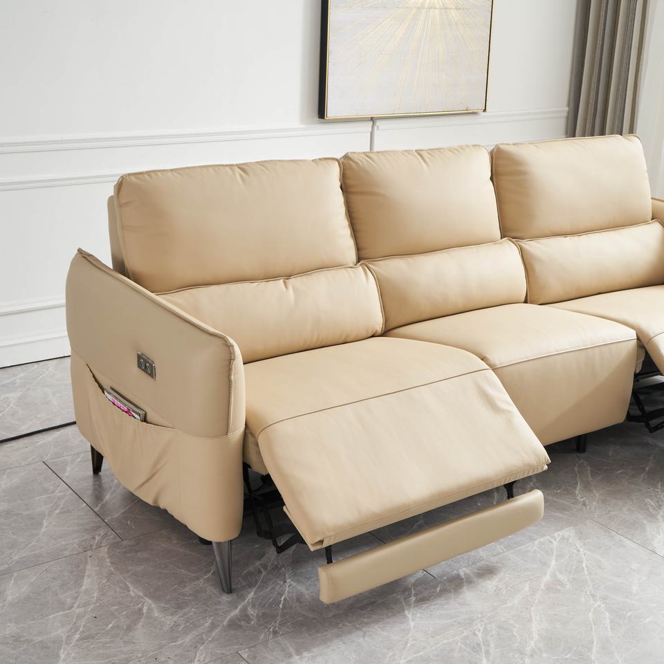 Electric Recliner Sofa Bed Three Seat Genuine Leather Modern Sofa Set with Massage Cooling Features and Metal Frame
