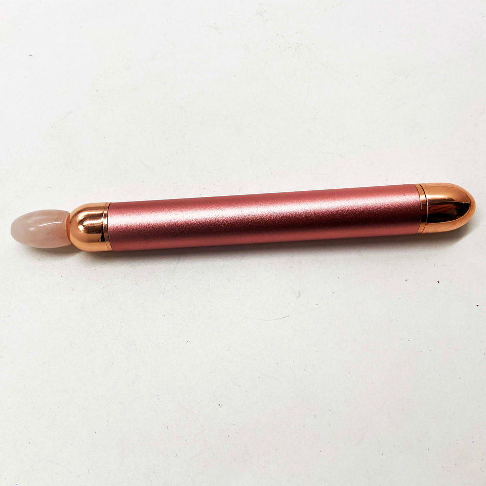 ลูกกลิ้งนวดหน้าไฟฟ้าทำจากควอทซ์โรสโลโก้ตามสั่งพร้อมกล่องลูกกลิ้งคริสตัลสีชมพูคุณภาพสูง