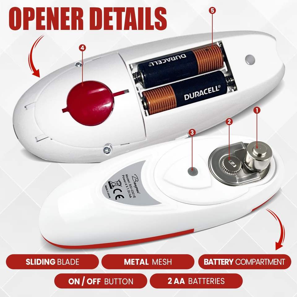 ที่เปิดขวดกระป๋องอัตโนมัติใช้แบตเตอรี่ในครัวที่ใช้ในบ้าน