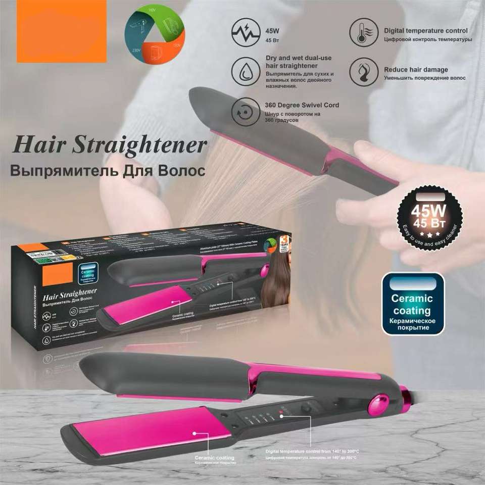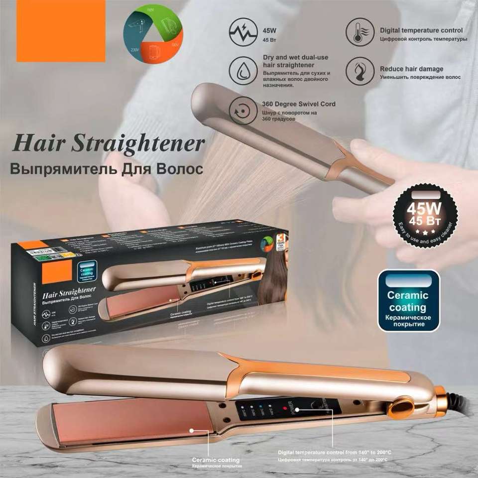 เครื่องหนีบผมไฟฟ้าระดับมืออาชีพ พร้อมฟังก์ชั่นม้วนผม ไฟ LED เหมาะสำหรับโรงแรม ใช้ได้กับผมเปียกและผมแห้ง เคลือบเซรามิกสเปน ร้อนเร็ว