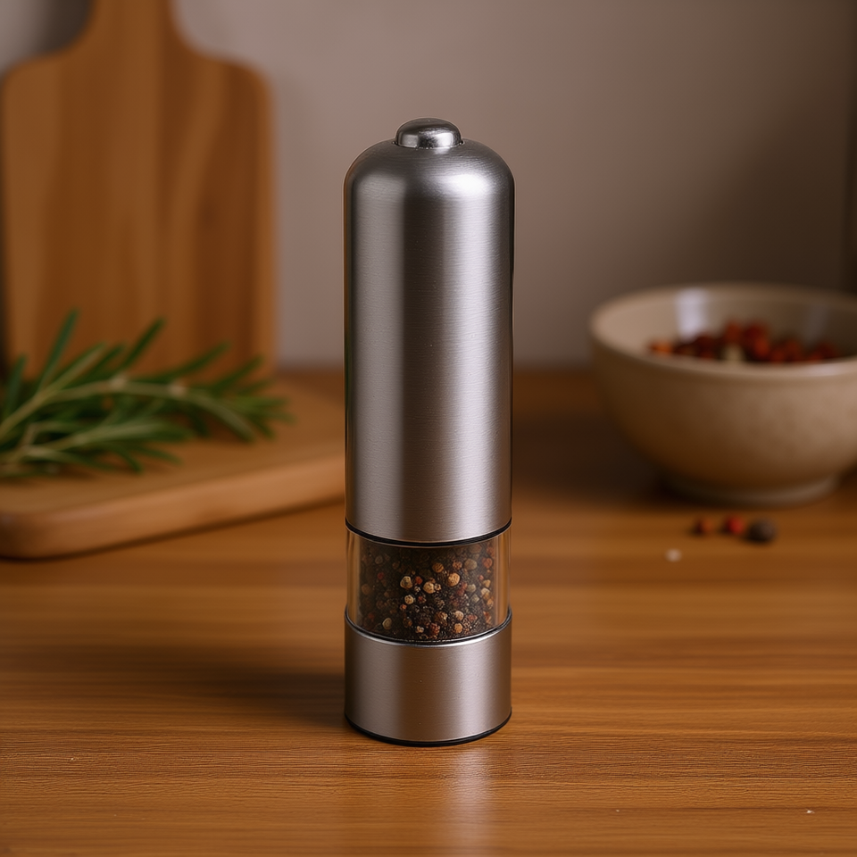 เครื่องบดเกลือพริกไทยไฟฟ้า สแตนเลสสตีล ปรับระดับได้ อุปกรณ์ปรุงรสในครัว