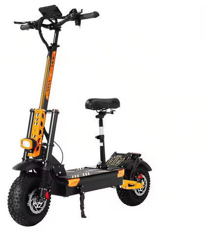 สกู๊ตเตอร์ไฟฟ้าสำหรับผู้ใหญ่ กำลังไฟ 7000 วัตต์ มอเตอร์คู่ ความเร็วสูงสุด 55 ไมล์ต่อชั่วโมง แบตเตอรี่ 12 โวลต์ 33 แอมป์ชั่วโมง ระยะทางวิ่งได้ 65+ ไมล์ ยางสำหรับทุกสภาพพื้นผิวขนาด 24 นิ้ว โครงสร้างอะลูมิเนียม