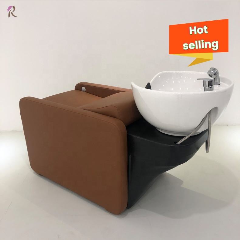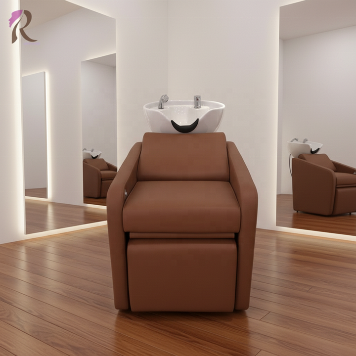 เก้าอี้สระผมไฟฟ้าพร้อมอ่างเซรามิก ชุดอุปกรณ์นวดสระผมสำหรับร้านเสริมสวย เก้าอี้สระผมมืออาชีพสำหรับเฟอร์นิเจอร์ร้านเสริมสวย