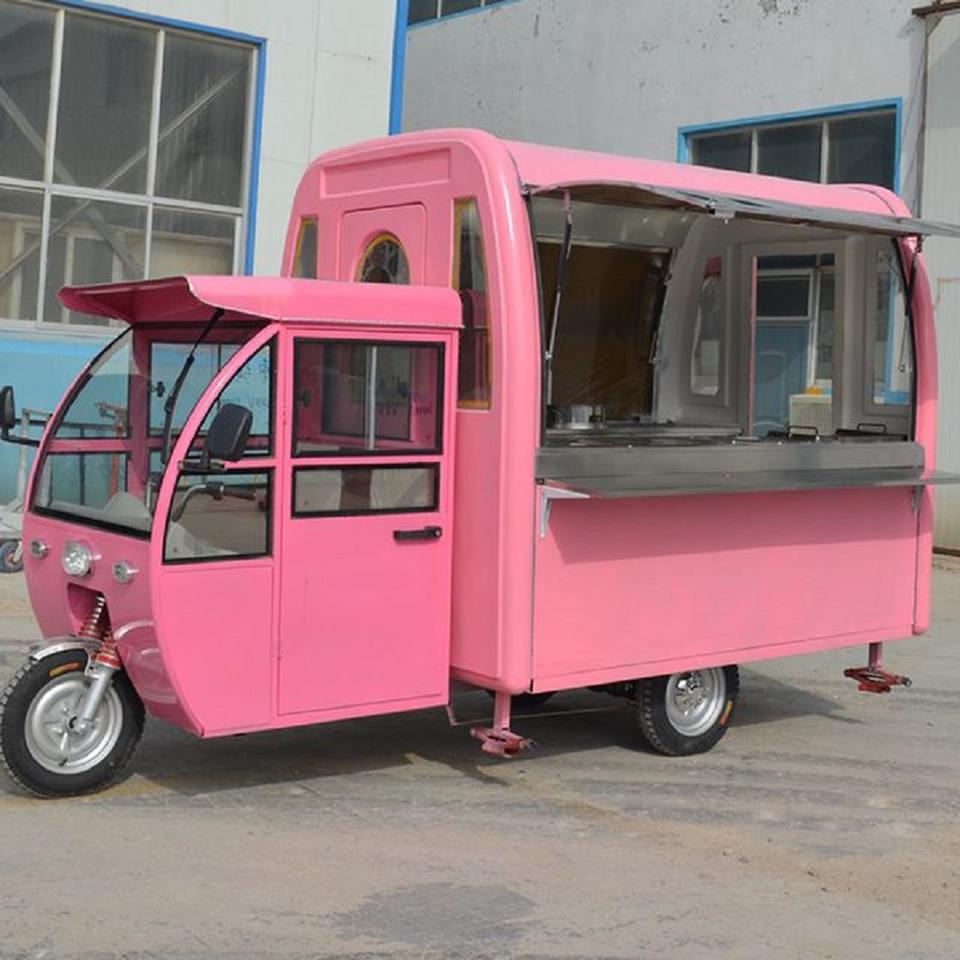 รถขายอาหารเคลื่อนที่ขนาดเล็กแบบไฟฟ้า ตุ๊กตุ๊ก รถขายอาหารเร็ว มือสอง ใช้สำหรับขายไอศกรีมกลางแจ้ง ขนมขบเคี้ยว โครงอะลูมิเนียม ป้องกันสนิม
