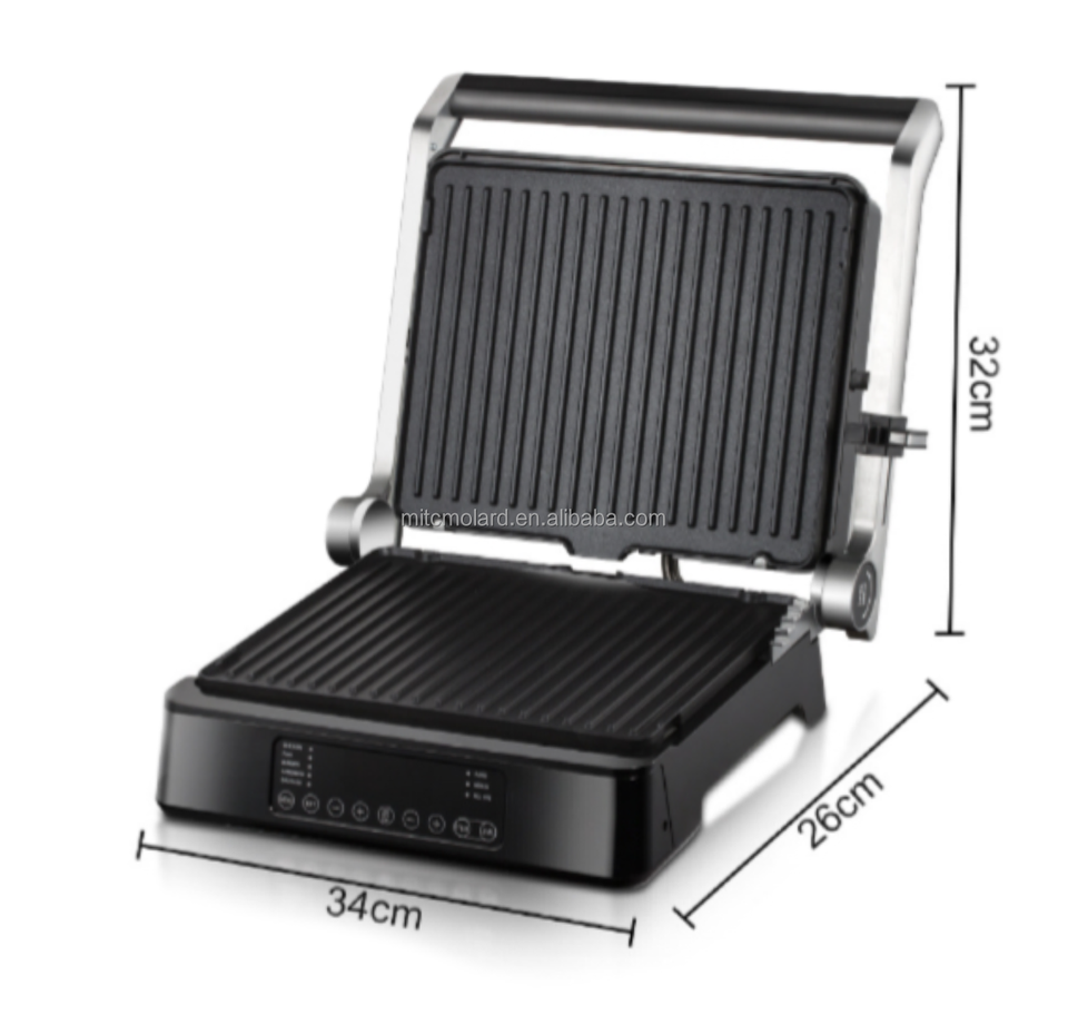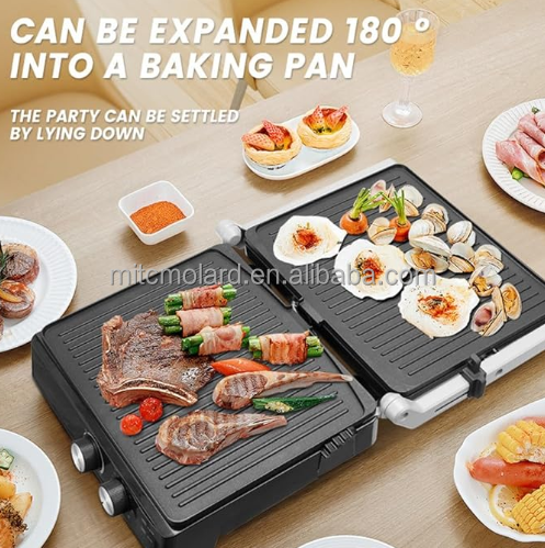 กระทะย่างบาร์บีคิวไฟฟ้าแบบไม่ติดกระทะย่างแบบดิจิตอลแผ่นสแตนเลสไฟฟ้าถอดออกได้180องศา