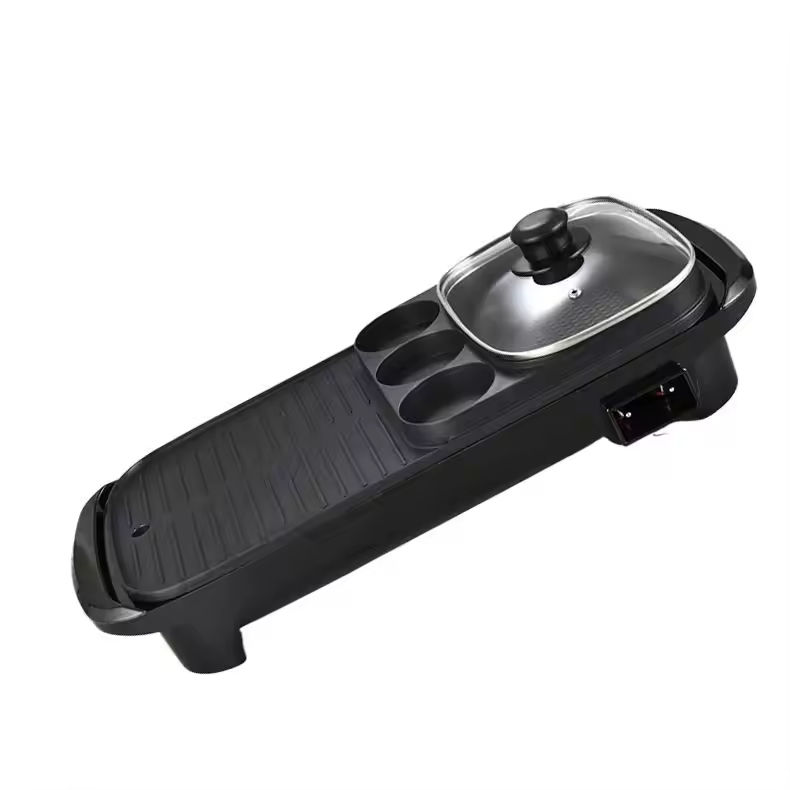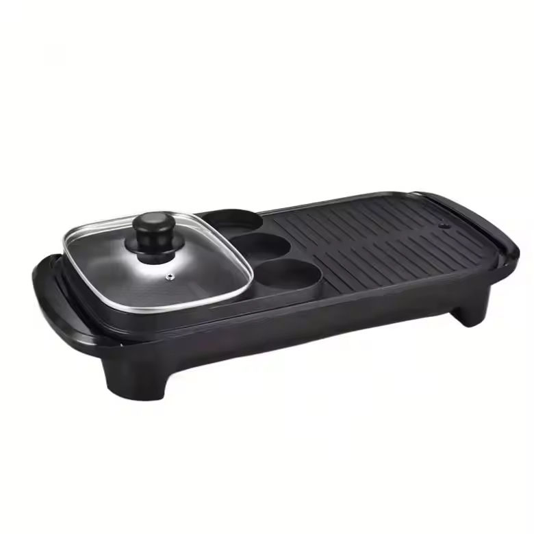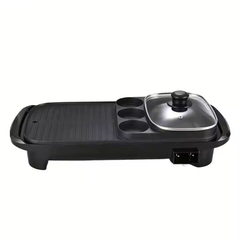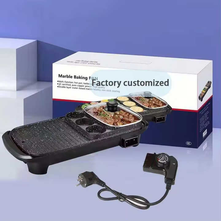 กระทะย่างไฟฟ้าสแตนเลสเคลือบ PTFE ป้องกันติด พร้อมหม้อไฟ สำหรับใช้ในบ้าน/นอกบ้าน บาร์บีคิว 1500 วัตต์ ประหยัดพลังงาน