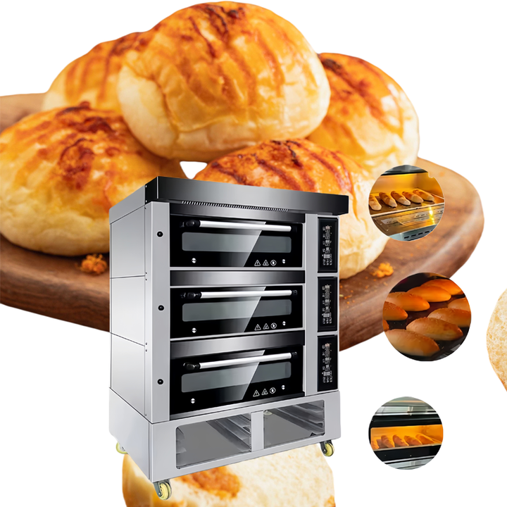 อะไหล่เตาอบเบเกอรี่อุตสาหกรรมแบบฉีดไอน้ำไฟฟ้า ชุดเตาอบเบเกอรี่ 16 ถาด พร้อมตัวเลือกเตาอบไอน้ำแบบหิน