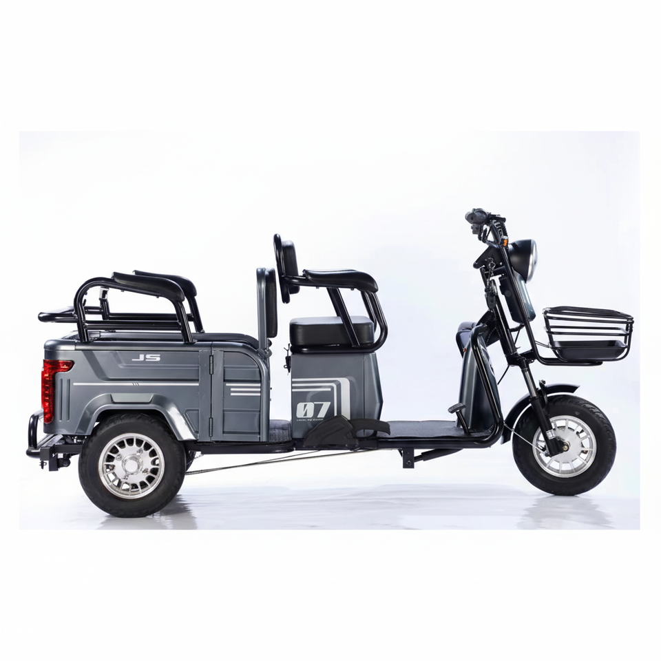 รถสามล้อไฟฟ้า 3 ที่นั่ง เกียร์เดียว 48V โครงเหล็กกล้าคาร์บอนสูง สำหรับผู้ใหญ่ ใช้เป็นสกู๊ตเตอร์เคลื่อนที่
