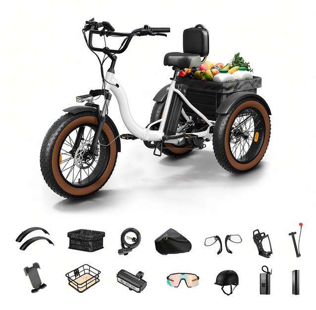 Electric Tricycle for Adults 24" Fat Tire 3-Wheel Electric Trike 960W Rear Motor 25MPH Cargo Tricycle 12-Speed Lithium Battery