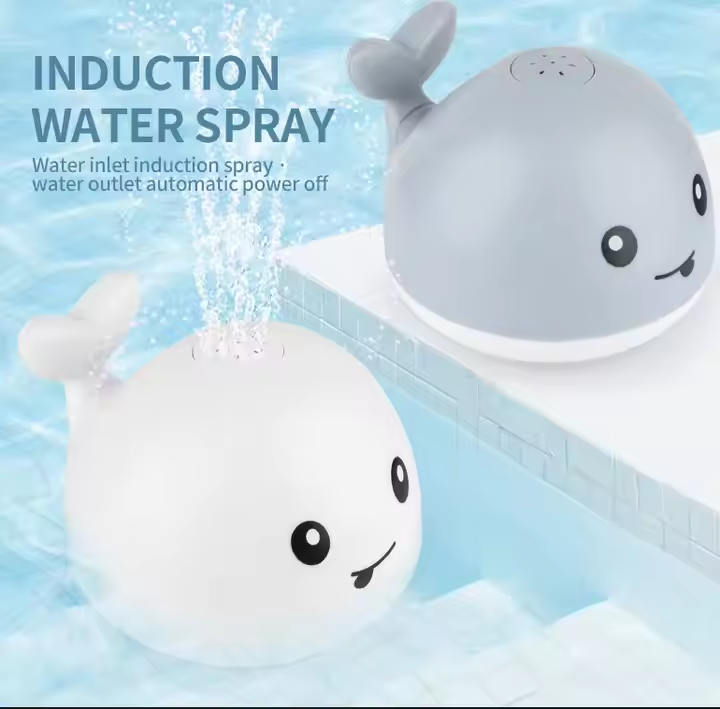 สเปรย์น้ำไฟฟ้าสำหรับว่ายน้ำอ่างอาบน้ำของเล่นรูปปลาวาฬนิ่มพร้อมจานลอยน้ำได้มีไฟสำหรับเด็กเล็ก
