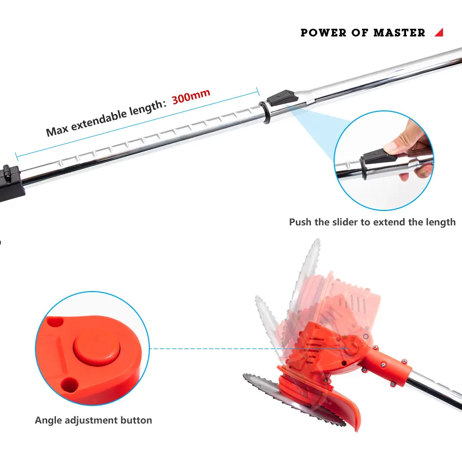 เครื่องตัดหญ้าไฟฟ้าไร้สาย 3-in-1 แบบไม่ใช้สายเอ็น/เครื่องตัดแต่งกิ่งไม้พร้อมแบตเตอรี่ 2 ก้อน 21V และล้อเลื่อน