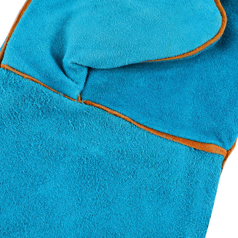 ถุงมือช่างผ้าใบหนังนิ่มหนังวัวสีแดงยาวทนความร้อนในงานเชื่อมไฟฟ้า