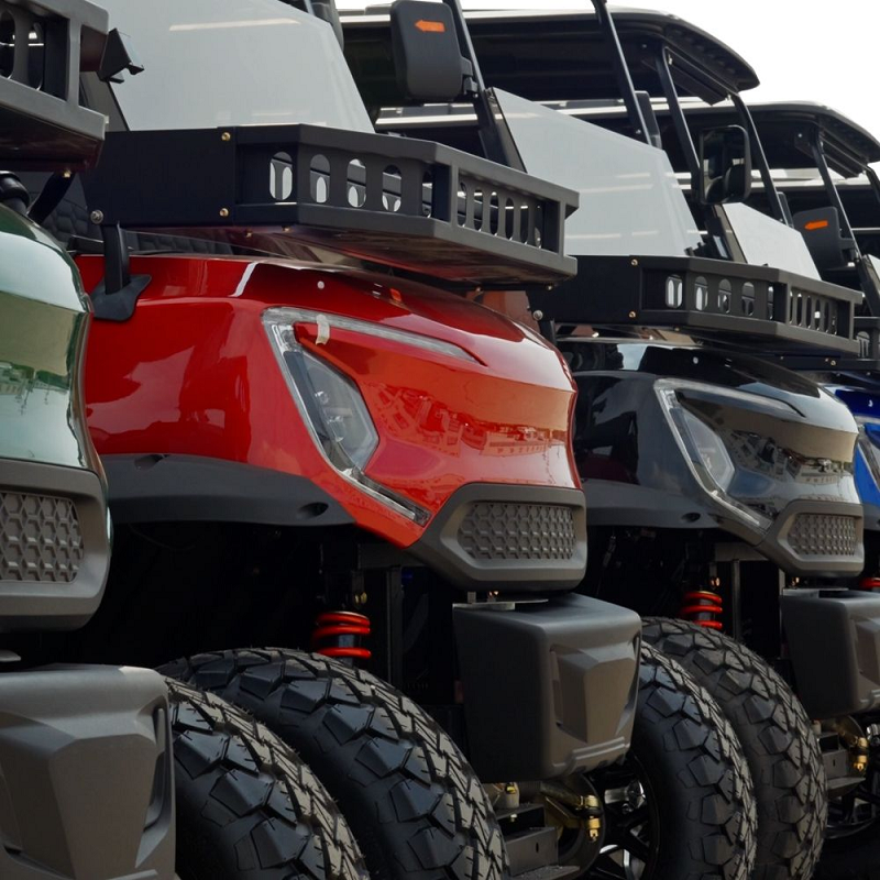 รถกอล์ฟไฟฟ้าและน้ำมันเบนซิน 2+2 ที่นั่ง พร้อมส่ง 48V 72V รถกอล์ฟสี่ล้อ 4 ที่นั่ง สำหรับอีโครีสอร์ท