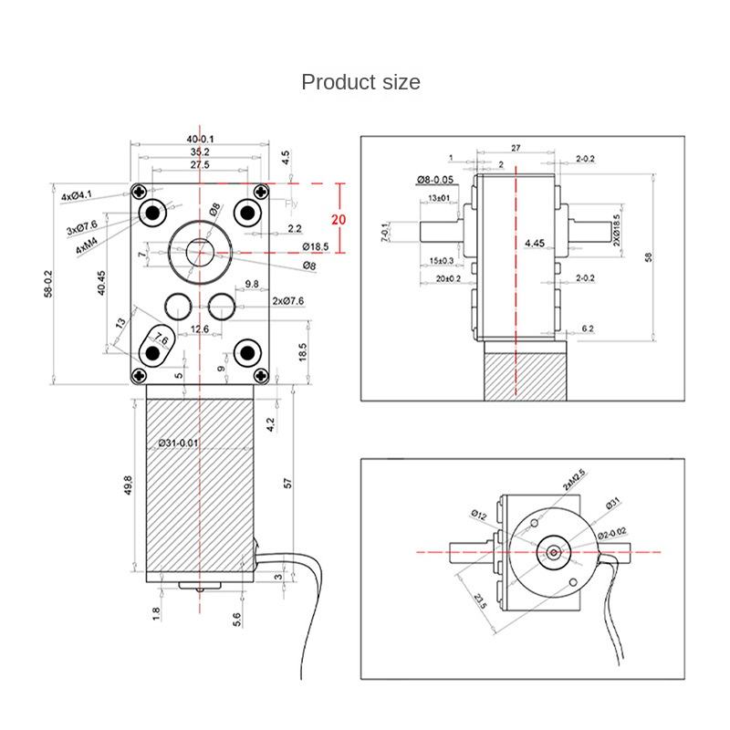 Electric High Torque 5840WG31 12v 10rpm 24 Volt Dc Worm Gear Motor with Encoder