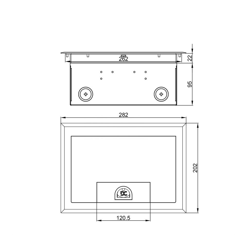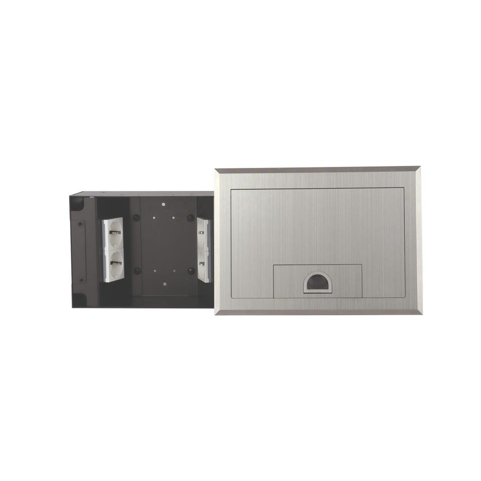 กล่องไฟฟ้าติดพื้นพร้อมฝาปิดสแตนเลสและเต้ารับไฟฟ้าคู่สำหรับติดตั้งในสำนักงาน