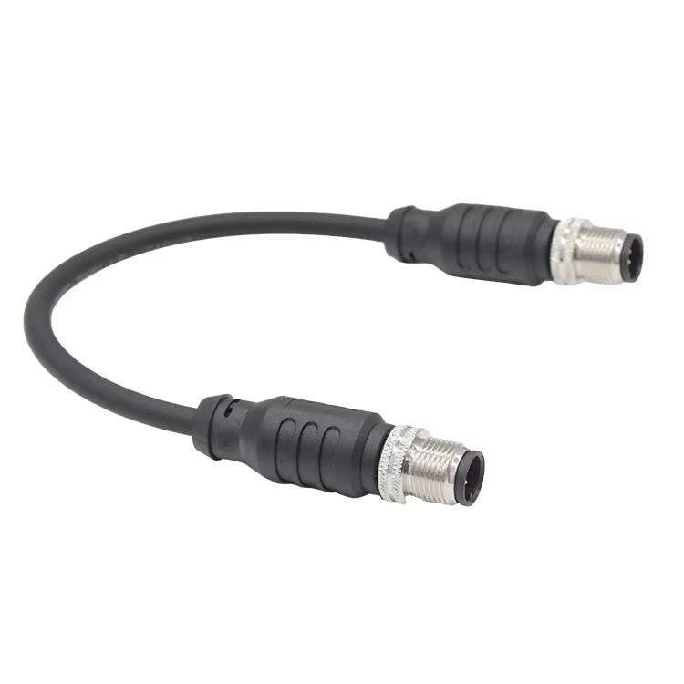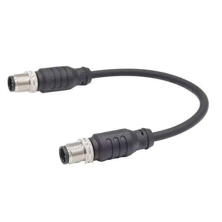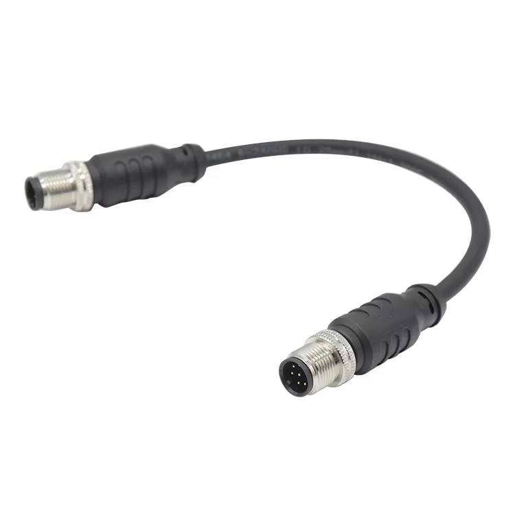 ขั้วต่อกันน้ำสำหรับสายไฟฟ้าอุตสาหกรรม M12 รหัส A แบบวงกลม 6 ขา ตัวผู้ ต่อกับ 8 ขา ตัวผู้ สายเคเบิลแบบหัวคู่
