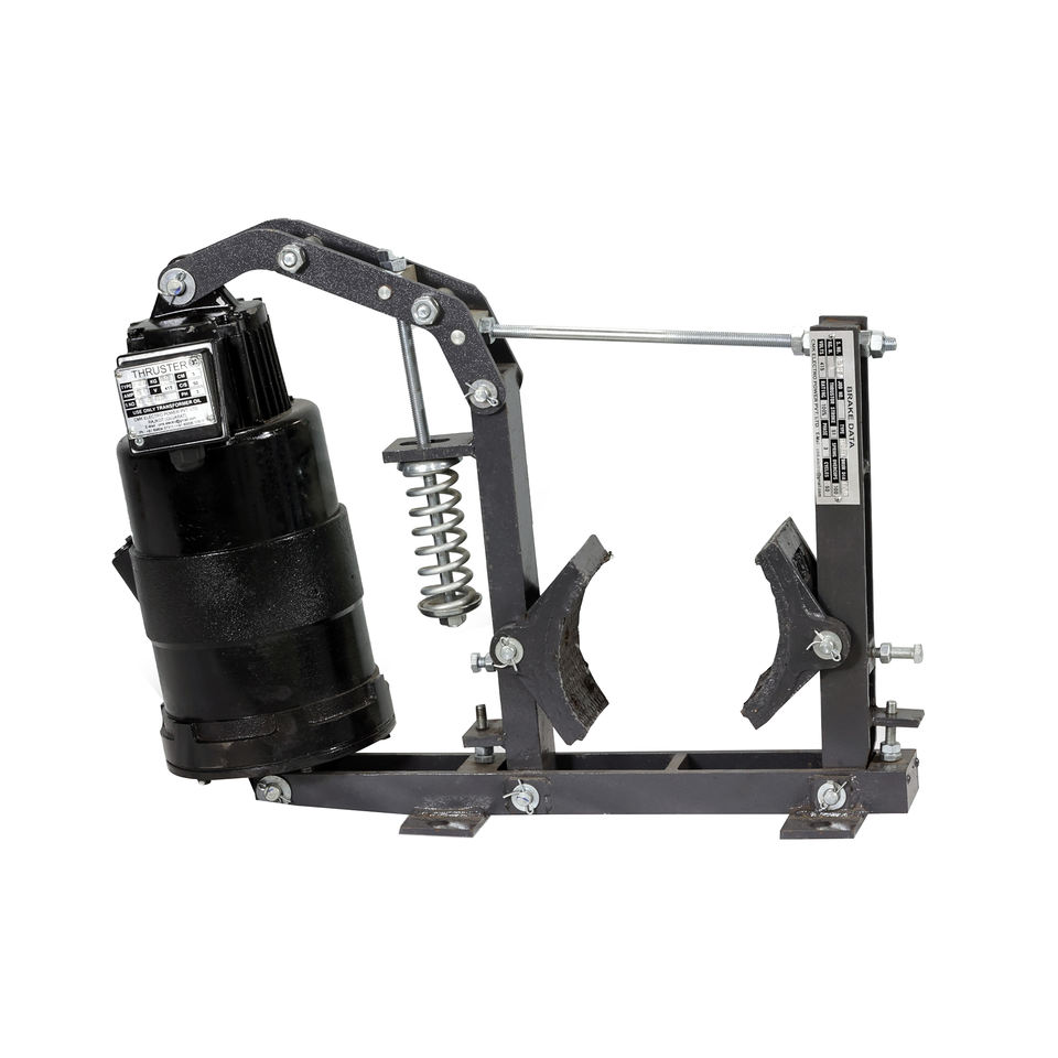 เบรกแบบใช้แรงดันไฟฟ้าไฮดรอลิกพร้อมลูกปืนลูกกลิ้งใหม่สำหรับดรัมขนาดเส้นผ่านศูนย์กลาง 300 มม. น้ำหนัก 62 กก. แรงดันไฟฟ้า 400/440 โวลต์ เส้นผ่านศูนย์กลางดรัม 300 มม. CMK
