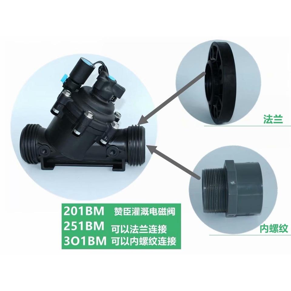 วาล์วลดแรงดันแม่เหล็กไฟฟ้า 75 ท่อ DN65 ตัวเรือนพลาสติก ยางบุภายใน หน้าแปลนเกลียวใน ระบบน้ำสำหรับการชลประทาน