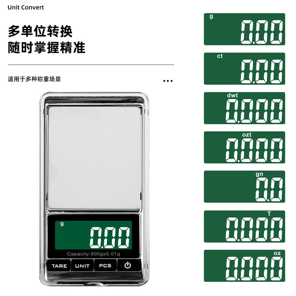 เครื่องชั่งเครื่องประดับอิเล็กทรอนิกส์ 500 กรัม x 0.01 กรัม เครื่องชั่งดิจิตอลแบบพกพาสำหรับชั่งทองและยาจีน
