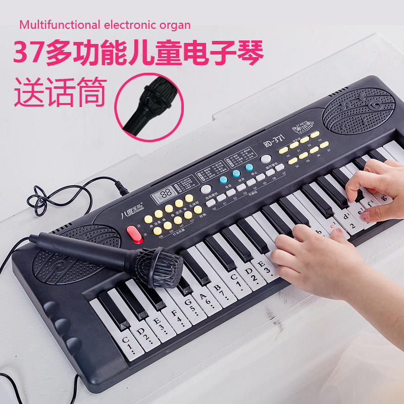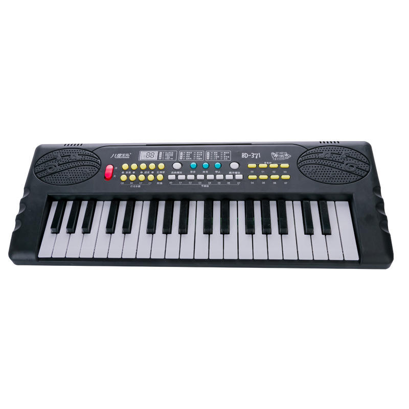 คีย์บอร์ดอิเล็กทรอนิกส์เปียโนเด็ก 37 คีย์พร้อมไมโครโฟนสำหรับเด็กวัยหัดเดินอายุ 2 ถึง 4 ปีสีดำ