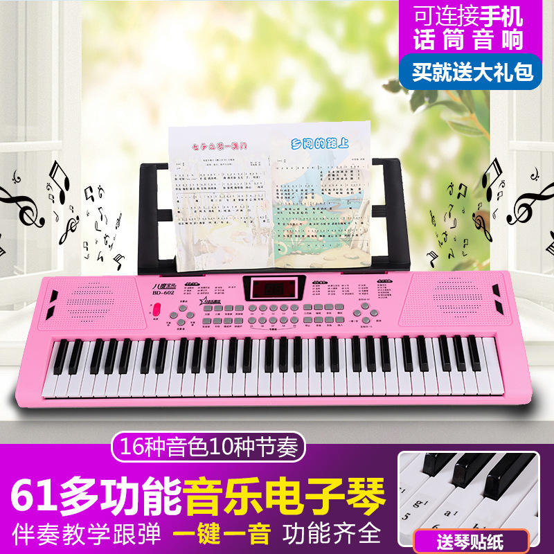 คีย์บอร์ดอิเล็กทรอนิกส์ Bd-602 61 คีย์ สำหรับเด็ก ของเล่นดนตรี พร้อมขาตั้งโน้ตเพลง