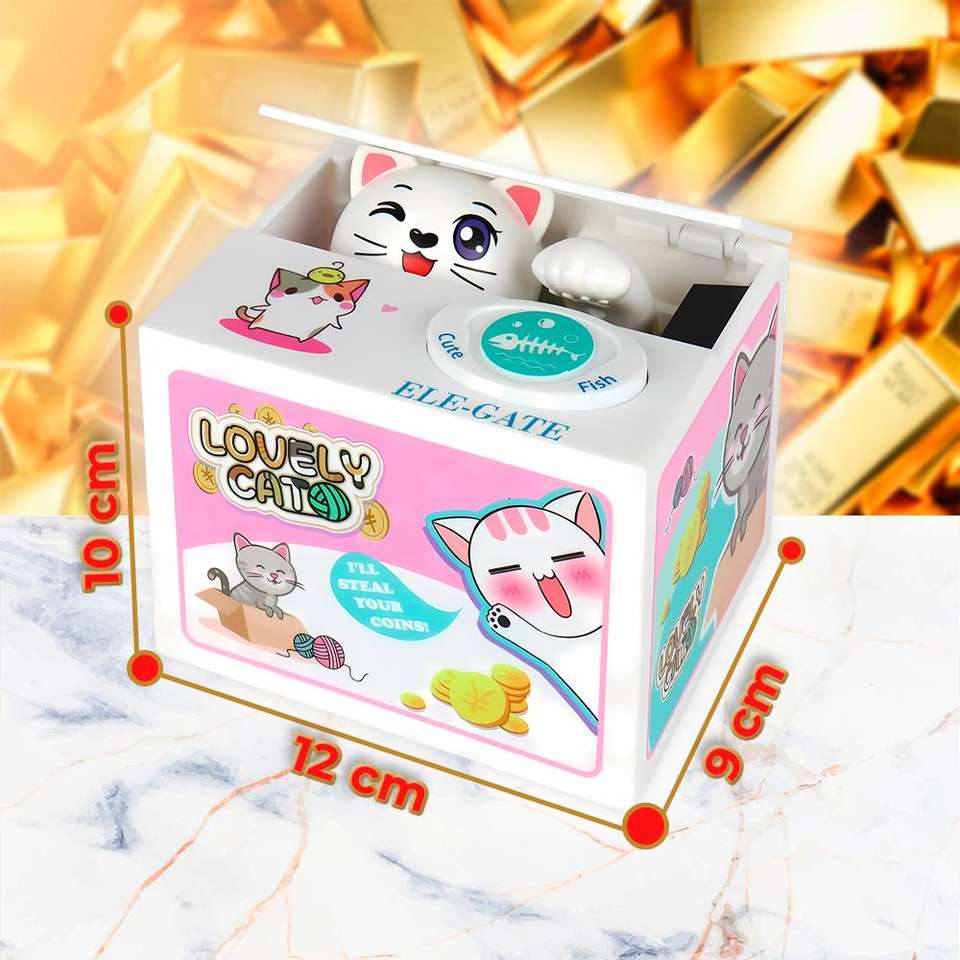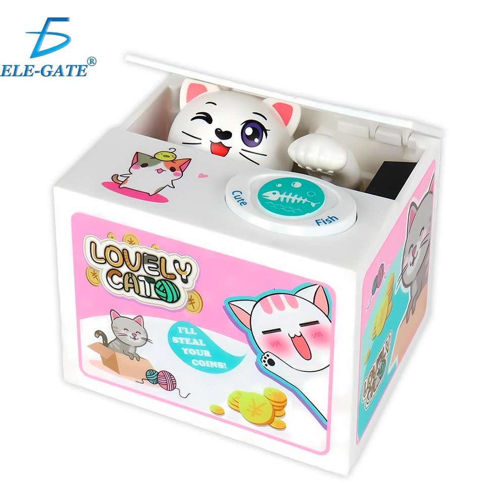 กระปุกออมสินพลาสติกอิเล็กทรอนิกส์แบบพกพาสำหรับขโมยเหรียญของเล่นแมว