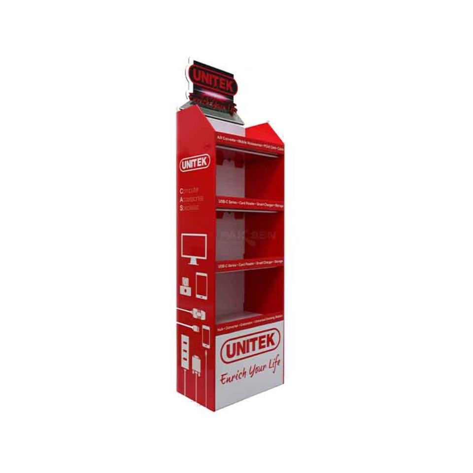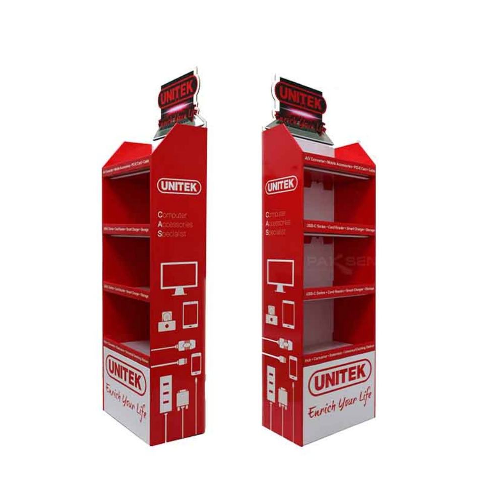 จอแสดงผลโฆษณาสินค้าอิเล็กทรอนิกส์ ชั้นวางกระดาษแข็งสำหรับมันฝรั่งทอด ชั้นวางกระดาษลูกฟูกสำหรับผลิตภัณฑ์ทำความสะอาด