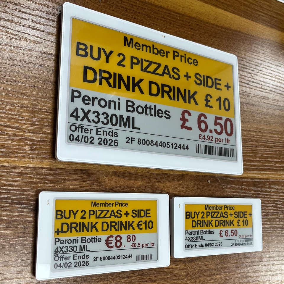 ป้ายชั้นวางสินค้าอิเล็กทรอนิกส์ ESL สำหรับโคโลญจน์ คลังสินค้าในสหรัฐอเมริกา โรงงานผลิตตามสั่ง ขนาด 7.5 นิ้ว จอแสดงผล E Ink รองรับระบบชั้นวางสินค้า ESL