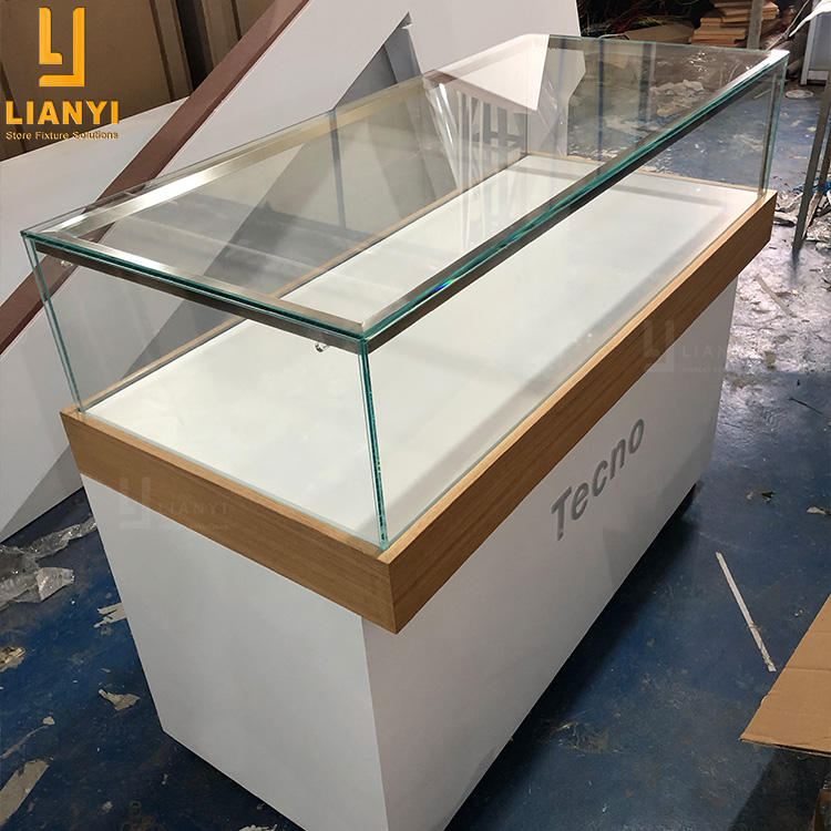 ตู้โชว์โทรศัพท์มือถือแบบกระจก MDF ดีไซน์หรูหราสำหรับร้านค้าปลีก