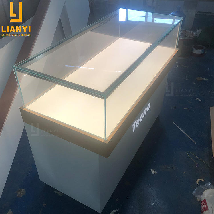 เคาน์เตอร์ตู้โชว์โทรศัพท์มือถือกระจก MDF หรูหราร้านค้าอิเล็กทรอนิกส์