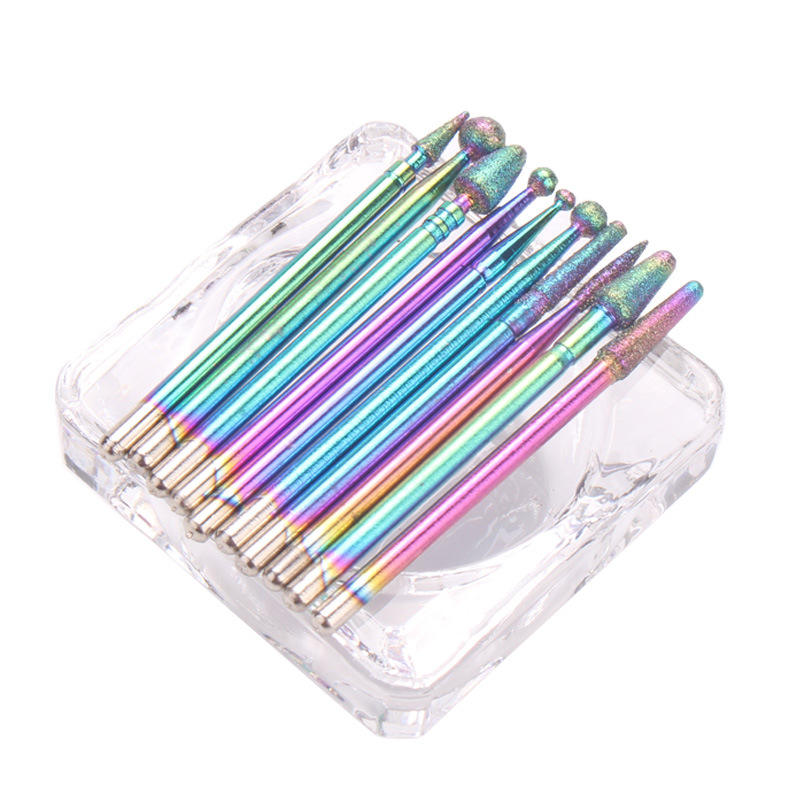 หัวเจียรเพชรเคลือบไฟฟ้า สีต่างๆ สำหรับทำความสะอาดขอบเล็บอย่างแม่นยำ และเตรียมผิวสำหรับทำเล็บแบบรัสเซีย