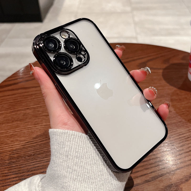 เคสพีซีแข็งเคลือบด้วยไฟฟ้าสำหรับ 15 โปรแม็กซ์-เลนส์กระจกนิรภัยป้องกันการกระแทกการกระจายความร้อน
