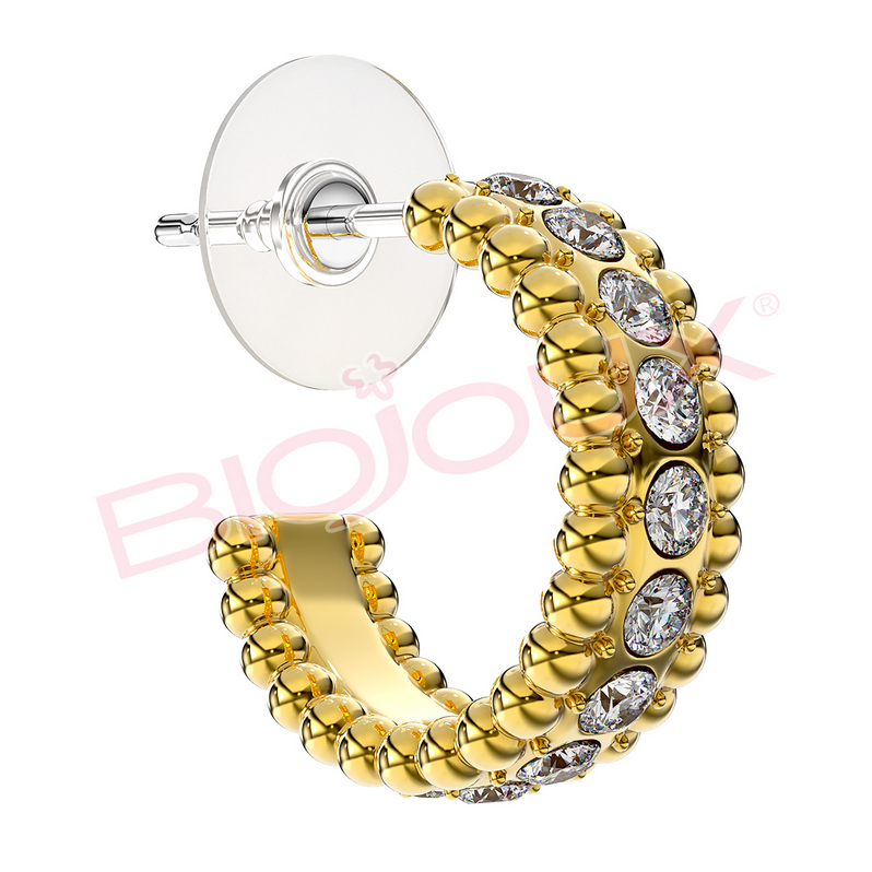 ต่างหู Elegance 15 มม. 24G สำหรับผู้หญิง สไตล์คลาสสิก วินเทจ ทันสมัย ทำจากไทเทเนียม รูปทรงเรขาคณิต ประดับมุก ต่างหูแบบห่วงและแบบติด ปลอดภัยต่อผิวแพ้ง่าย ยี่ห้อ Biojoux รุ่น BJT240