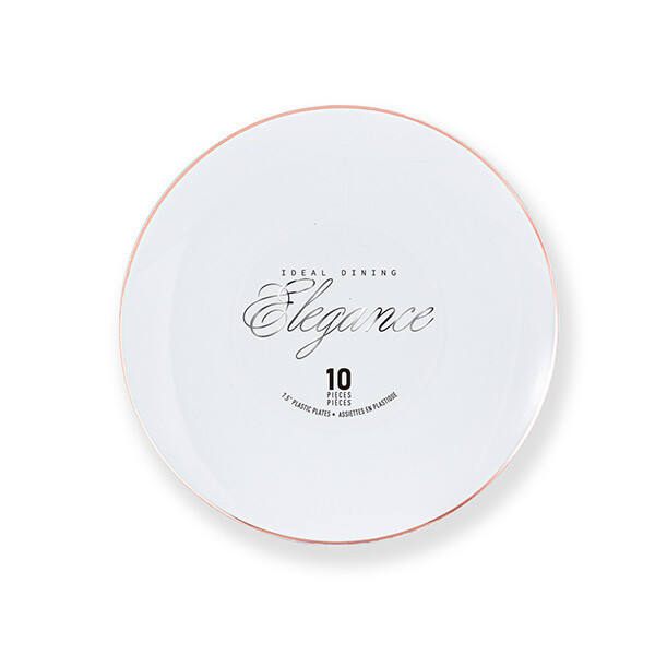 Elegance 7.5\" White Plastic Plate with Rose Gold Rim Stamp for Camping 12pcs/carton