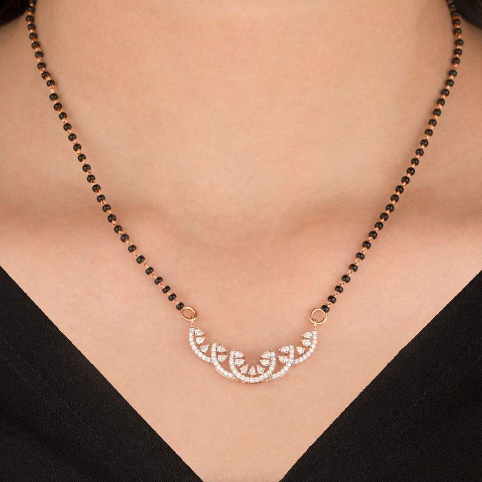 สร้อยคอ mangalsutra ประดับเพชรรูปพระจันทร์เสี้ยวที่งดงามด้วยลูกปัดสีดำประดับเนื้อละเอียดสีโรสโกลด์