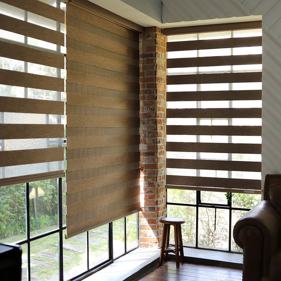 ผ้าม่านลายม้าลายสไตล์เกาหลีแบบปรับแต่งได้ม่านม้วนบังแสงสำหรับหน้าต่างใช้มอเตอร์กรองแสงอัตโนมัติทันสมัย