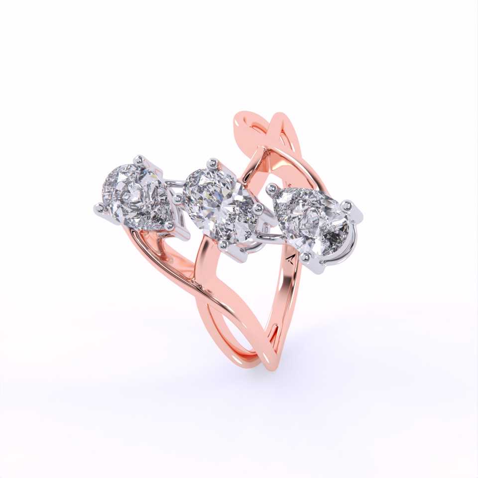 แหวนเพชรสามส่วนทำจากทองประดับลูกแพร์สามชั้นสง่างามแหวนเพชรสังเคราะห์ทำจากหิน3ชั้นเครื่องประดับสำหรับการหมั้นและงานแต่งงานที่ยั่งยืน