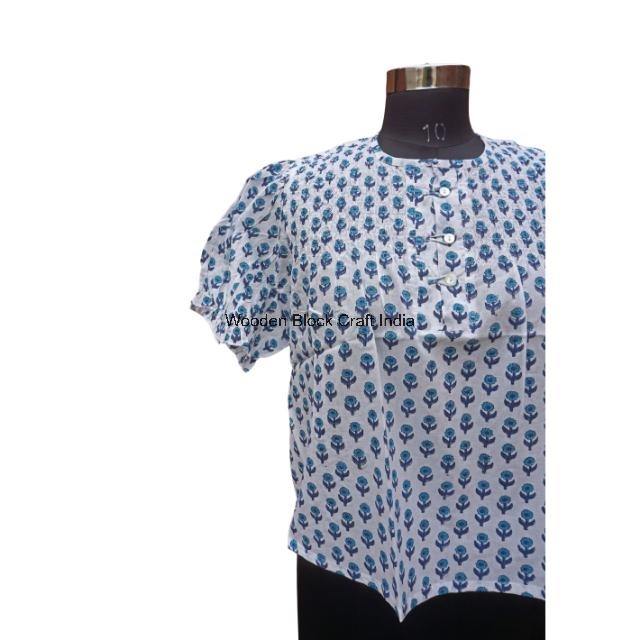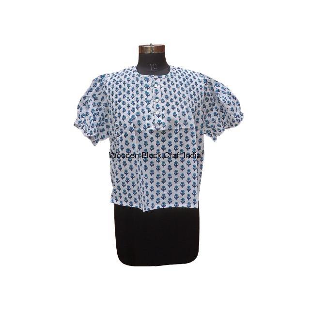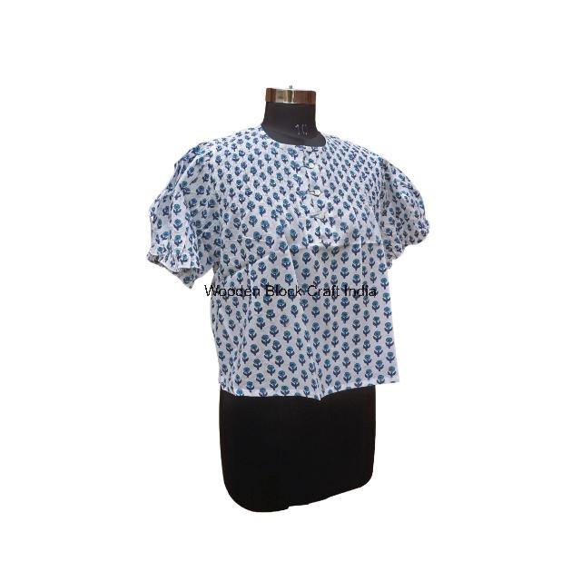 เสื้อครอปขนาดเล็กคอตั้งสวยงามรายละเอียดซับซ้อนหวานๆแขนพองพิมพ์ลายดอกไม้100% ผ้าฝ้ายฤดูร้อน/ฤดูใบไม้ร่วง